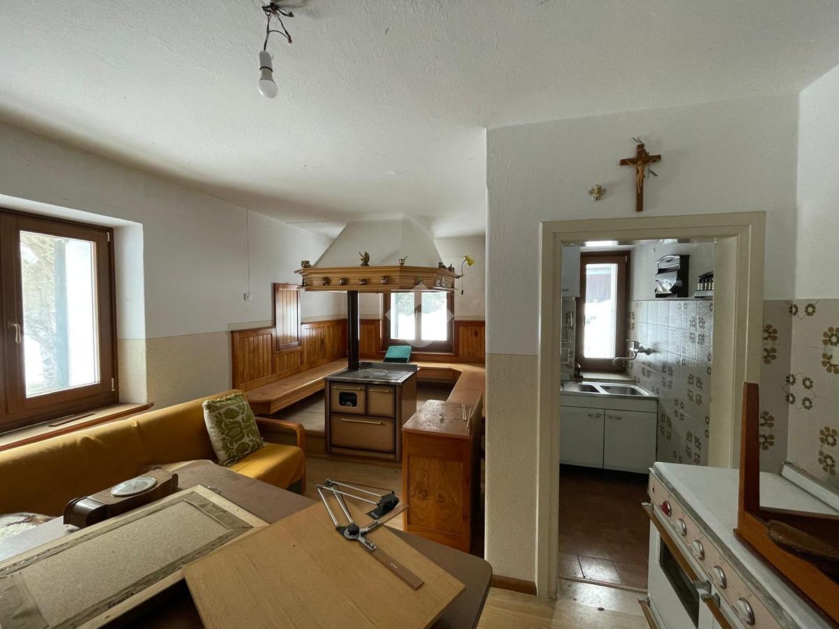 L’abitazione si sviluppa su tre piani fuori terra e conserva intatto il sapore delle case di una volta. Al piano terra l’atmosfera è calda e accogliente: la cucina con larin diventa il cuore della casa, affiancata dalla zona giorno e da un bagno con vasca, ideale per ritrovare comfort e relax dopo una giornata in montagna.
